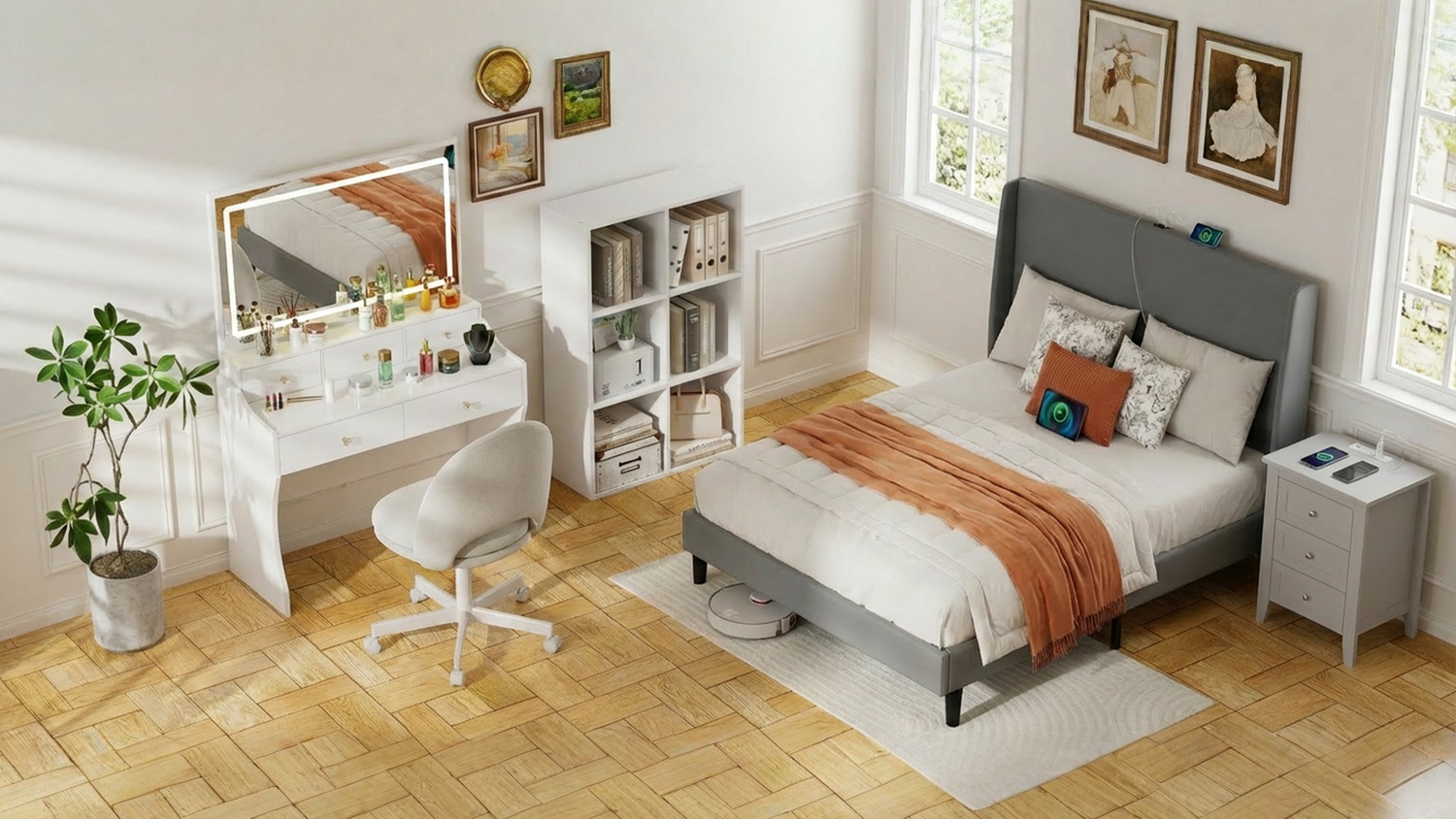 COMHOMA Vanity Desk with Large Storage, RGB LED Lights and Power Outlet B1004