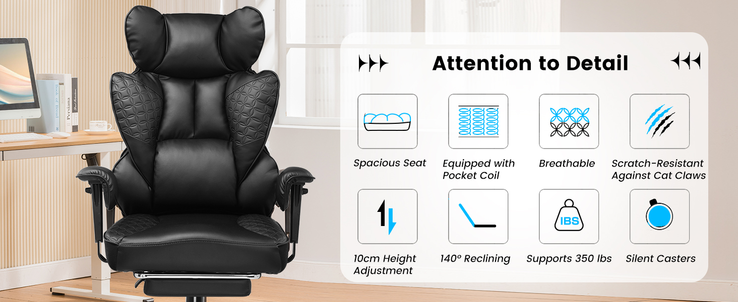 You want a chair with great support, adjustability, and comfort. Look for adjustments like seat depth, adjustable armrests, and lumbar support. These features help you sit better in your office. You can work longer and feel less tired with the right adjustments.