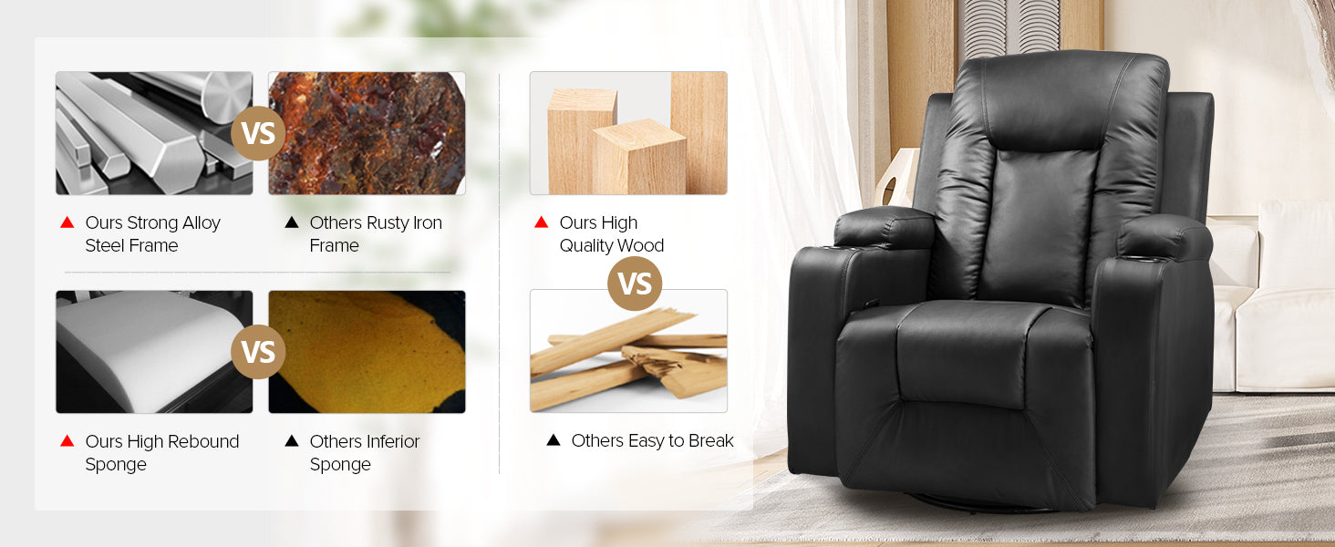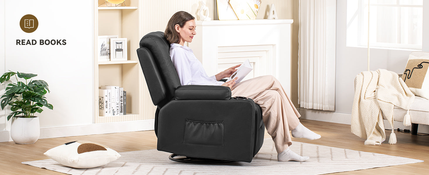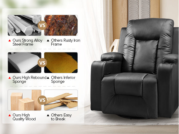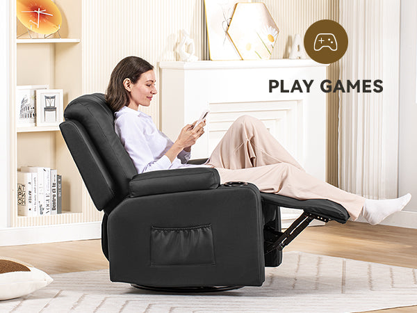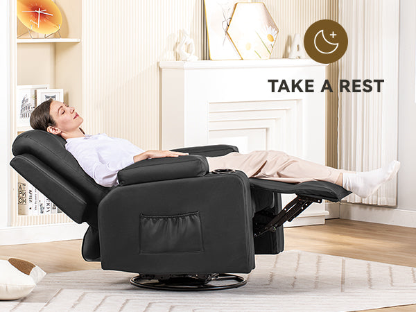 COMHOMA PU Massage Recliner with Swivel, Heat & Cup Holders H7134