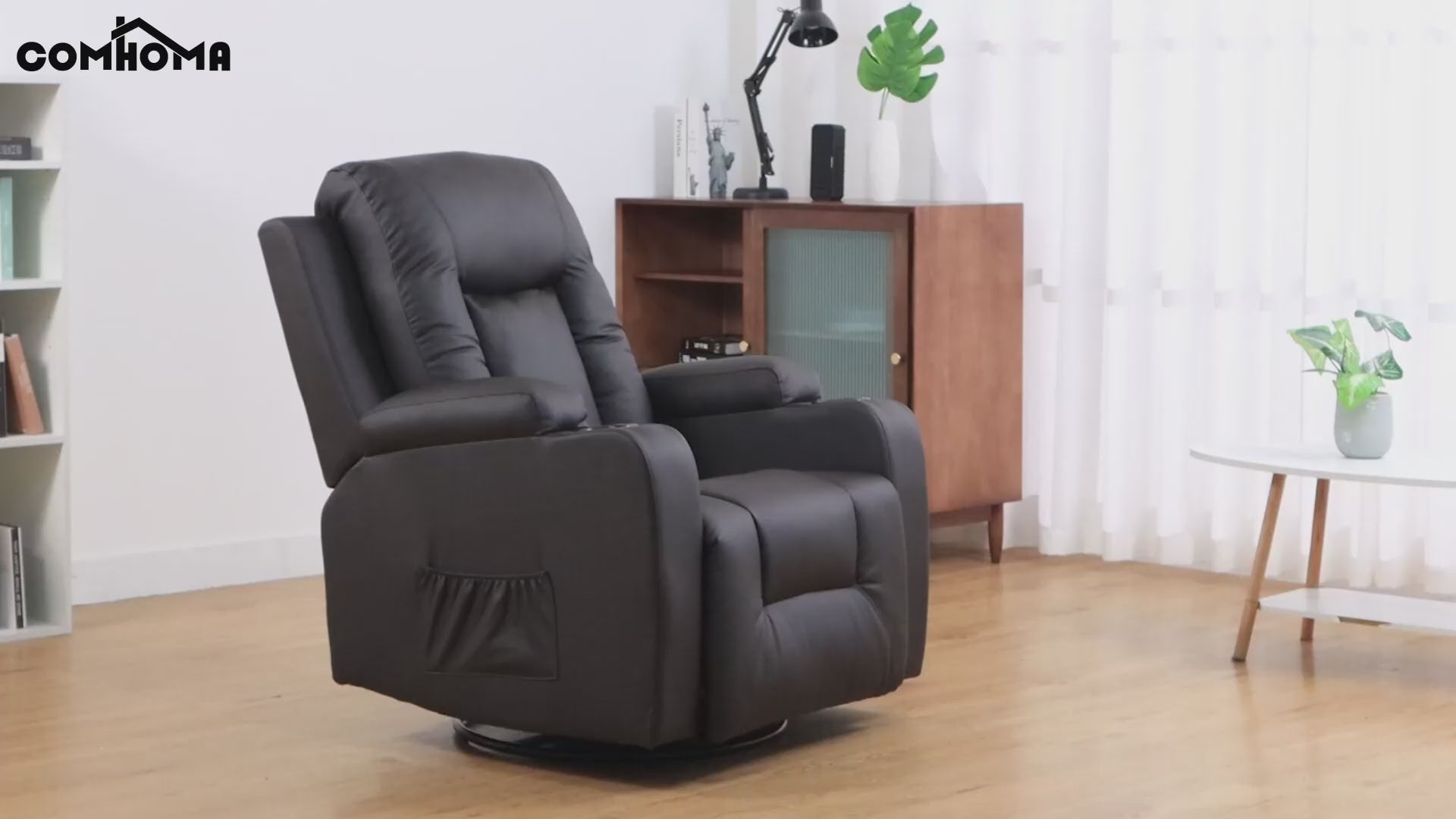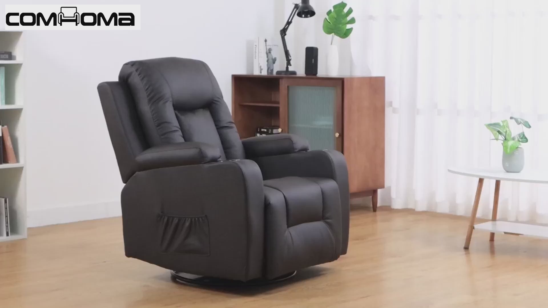 COMHOMA PU Massage Recliner with Swivel, Heat & Cup Holders H7134