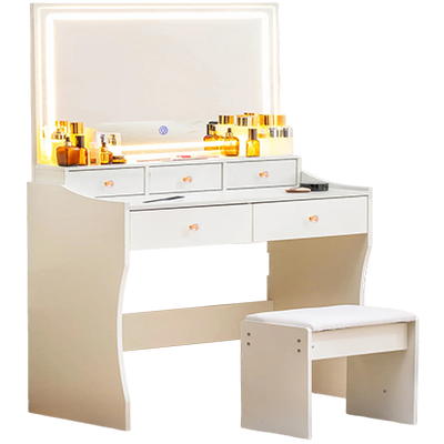 COMHOMA Large Makeup Vanity Desk with Mirror and Lights, 6 Drawers & 1 Storage Cabinet B1005